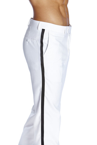 Step into sophistication with mens tuxedo pants satin stripe from Solid Color Pants. Featuring a striking red satin band along the side seam, these black flat-front tuxedo pants blend timeless elegance with a bold modern twist. Perfect for black-tie events, weddings, and formal occasions, they offer a sleek fit and unparalleled style. Pair them with a classic tuxedo jacket and polished shoes to complete a refined, head-turning look. Upgrade your formalwear with these standout tuxedo pants designed for the confident, fashion-forward man.